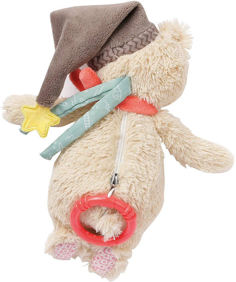 Für die schönsten Träume! Die flauschige Mini-Spieluhr Bär aus der Bruno Kollektion von Fehn wird Babys Herz im Nu erobern. Mit kuschelweichen Materialien in sanften Farben, der großen Schlafmütze mit Stern und seinem verschmitzten Lächeln lädt er zum Fühlen, Kuscheln und Liebhaben ein. Spieluhr Bär von Fehn ab Geburt geeignet mit herausnehmbarem Spielwerk & Reißverschluss Melodie “Guten Abend, gut´ Nacht” (Brahms Wiegenlied) Einfach am roten Greifring der Spieluhr ziehen und es erklingt die bezaubernde Melodie “Guten Abend, gut´ Nacht” in angenehmer Lautstärke. Babys werden beruhigt, getröstet und sanft in den Schlaf gewogen. Das Spielwerk kann durch Öffnen des Sicherheits-Reißverschlusses mit Hilfe einer Büroklammer entnommen werden. Ob als flauschiger Spielkamerad oder treue Einschlafhilfe: Der bezaubernde Bär ist zuhause und unterwegs ein echter Hingucker und wird zu Babys erstem besten Freund. Mit zwei Bändern ist er schnell an Kinderwagen, Babyschale und Bettchen befestigt.