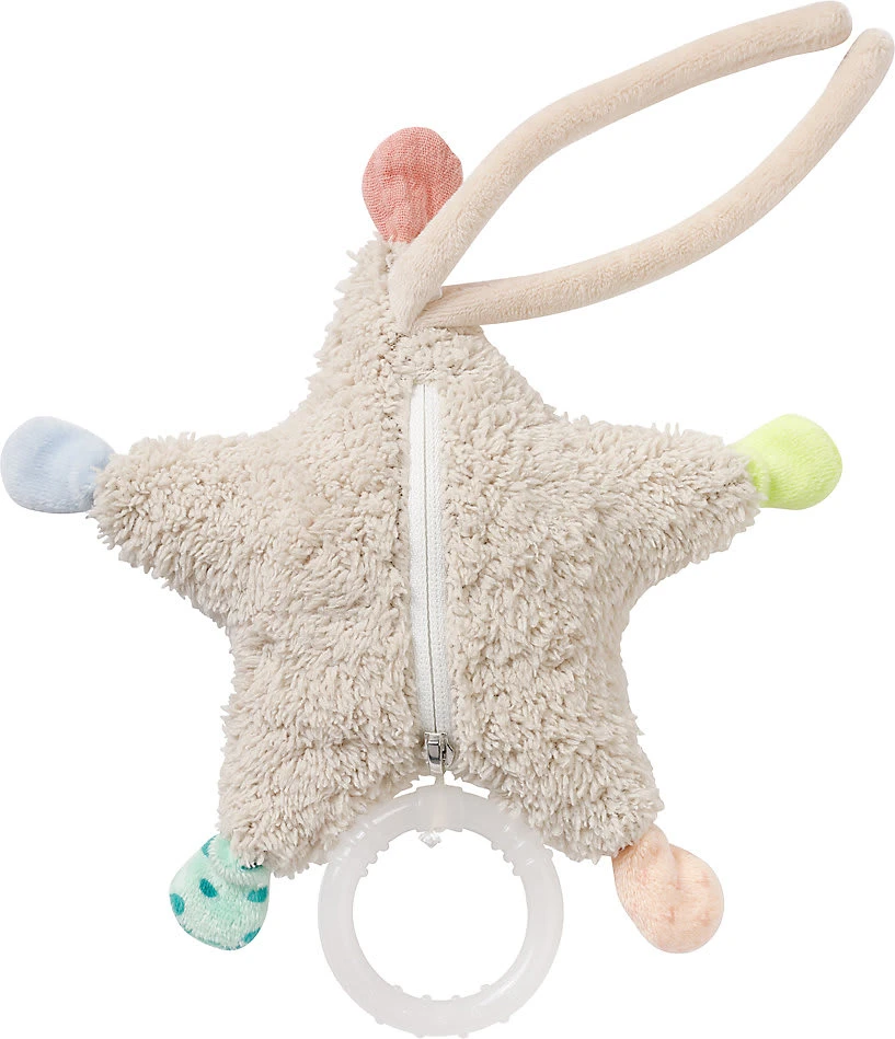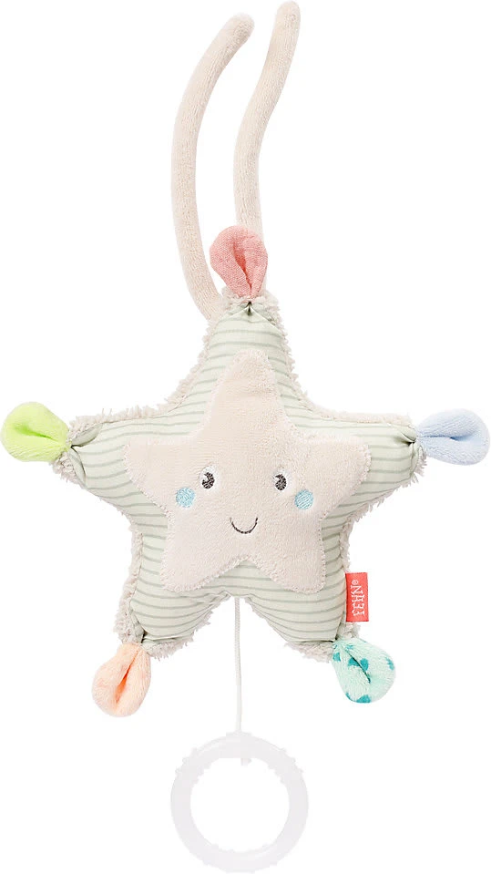 Die süße Seestern-Spieluhr von Fehn tröstet, beruhigt und hilft dank sanfter Melodie beim Einschlafen. Mini-Spieluhr Seestern von Fehn aus der “Meereskinder”-Kollektion spielt die Melodie von “Weißt du wieviel Sternlein stehen” Spieldauer ca. 1,5 Minuten aufziehbares, herausnehmbares Spielwerk Obermaterial aus Velours, Druckstoff, Bouclette und Musselin ab Geburt geeignet Der freundliche Seestern ist ein toller Gefährte von Geburt an: Er hilft den Kleinen mit der schönen Melodie von “Weißt du wieviel Sternlein stehen” zuverlässig beim Einschlafen. Die verschiedenen Materialien laden die Kleinen zum Greifen und Entdecken ein und fördern so spielerisch die Feinmotorik. Dank den praktischen Bindebändern kannst Du die Spieluhr bequem am Bettchen, dem Laufgitter und am Kinderwagen befestigen. Das Spielwerk kann dank einem Reißverschluss entnommen werden – so kannst Du den kleinen Seestern bequem waschen.