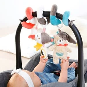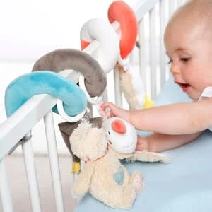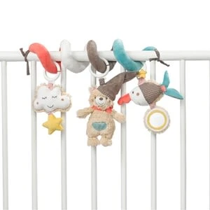 Die zuckersüße Activity-Spirale aus der Bruno Kollektion von Fehn bringt Babyaugen zum Leuchten. Der flauschige Bär Bruno und sein bester Freund Sammy, der Sägefisch können es kaum erwarten mit dem Nachwuchs auf Entdeckungstour zu gehen. ab Geburt geeignet Größe: 30 cm mit Rassel, Quietsche, Spiegel und Tierstimme Kuschelweiche Materialien in schönen Farben, sanfte Muster und liebevolle Details verzaubern dabei mit ihrem ganz eigenen Charme. Die drei Anhänger laden zum entspannten Spielen, Lernen und Entdecken ein. Die niedliche Wolke mit Quietsche, der Sägefisch mit Rassel und Spiegel und der Bär mit Zwitschermodul animieren zum Beobachten und Greifen und trainieren erste Hand-Auge-Koordination. Der kleine Spiegel fördert spielerisch Babys Selbsterkennung. Die Spielzeuge an der Spirale sind dank der Ringe beweglich und können auch einzeln bespielt und fixiert werden. Die Spirale wird einfach um Babyschale, Kinderwagen und Bettchen gewickelt und sorgt so für jede Menge Spielspaß zuhause und unterwegs.