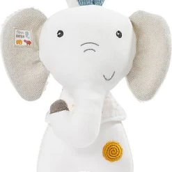 Die süße Spieluhr von Fehn überzeugt mit nachhaltigen Materialien und traumhaft schöner Melodie. Spieluhr Elefant von Fehn fehnNATUR-Kollektion 20 cm groß spielt die Melodie “Träumerei” von Schumann herausnehmbares Spielwerk zum Aufziehen Befestigungsbänder Obermaterial aus Bio-Baumwolle (kbA – kontrolliert biologischer Anbau), Füllung mit PLA-Fasern aus nachwachsenden Rohstoffen ab Geburt geeignet Der nette Elefant ist nicht nur ein kuscheliger Freund für die Kleinsten ab Geburt; er beruhigt und tröstet auch mit seiner sanften Einschlafmelodie. Die verschiedenen Stoffe aus Bio-Baumwolle und die Füllung aus nachwachsenden Rohstoffen machen die nachhaltige Spieluhr zum umweltfreundlichen Highlight. Die zwanzig Zentimeter große Spieluhr passt ideal in kleine Babyhände und kann dank der praktischen Bändern überall befestigt werden. Das integrierte, aufziehbare Spielwerk kann herausgenommen werden und der Stoffteil so in der Maschine gewaschen werden.