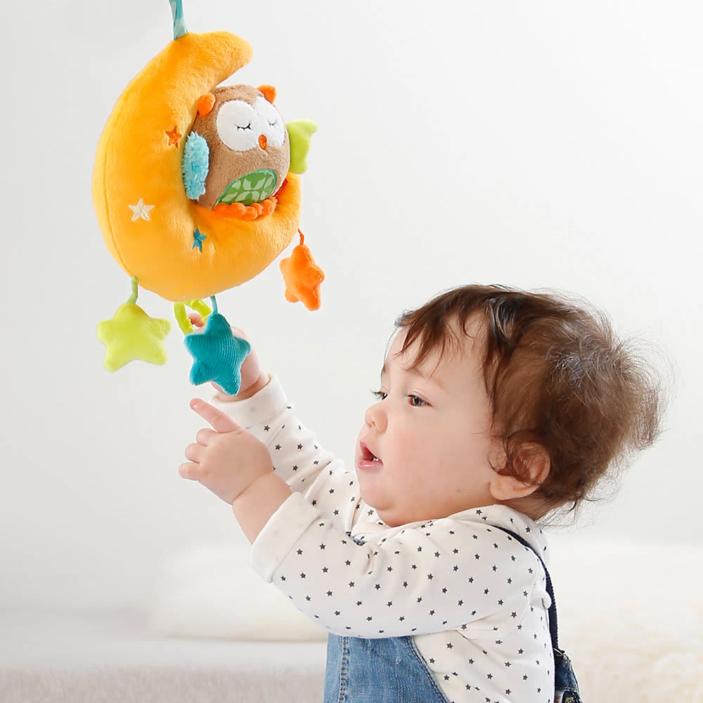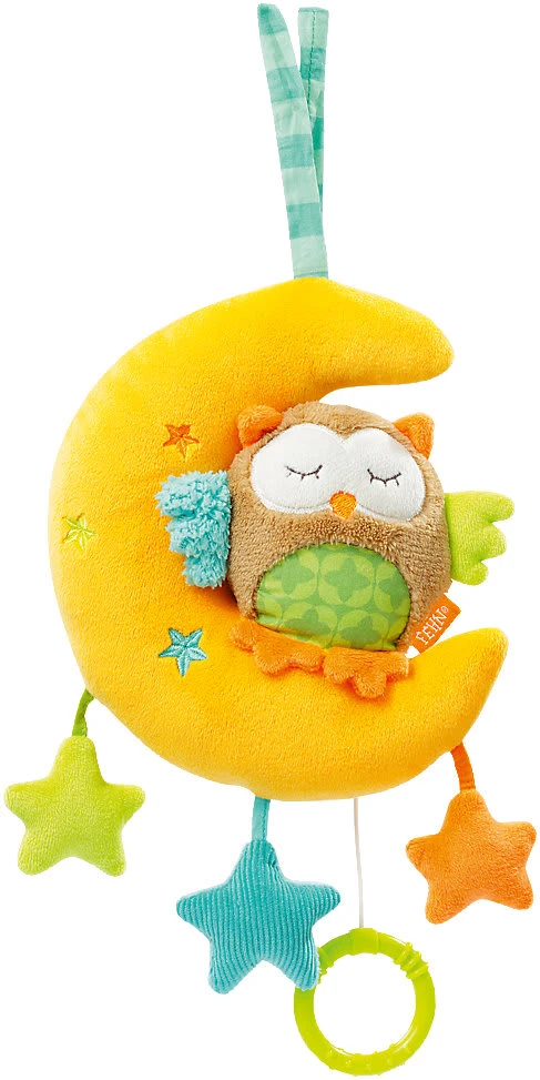 Die farbenfrohe Spieluhr Eule im Mond aus der Kollektion Sleeping Forest wird Babys Herz im Sturm erobern.
