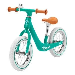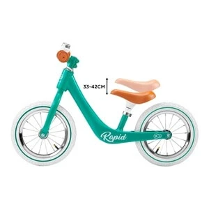 Mit dem Laufrad Rapid von Kinderkraft ist der Nachwuchs flink unterwegs: Das im Retro-Stil gehaltene Design punktet mit einem geringen Gewicht, kugelgelagerten Luftreifen und technischem Know-how. ab 3 Jahren belastbar bis 35 kg 3,75 kg, 85(L) x 39(B) x 53(H) cm, Raddurchmesser 30 cm leichter Rahmen aus Magnesiumlegierung, Vordergabel aus Stahl, höhenverstellbarer Sattel (33 bis 42 cm), begrenzter Lenkeinschlag, rutschhemmende Griffe, kugelgelagerte Luftreifen, Klingel Das Laufrad Rapid von Kinderkraft punktet im stilvollen Retro-Look. Sein Rahmen ist in einem Guss aus einer leichten Magnesiumlegierung gefertigt. So können bereits Kinder ab drei Jahren das nicht einmal vier Kilogramm schwere Bike selbstständig handhaben. Der ergonomisch geformte Sattel kann in der Höhe verstellt werden. So profitieren die Kids stets von einem Rad, das individuell an ihre Maße angepasst ist. Der Lenker liegt ihnen dank rutschhemmender Gummigriffe gut in der Hand. Sein Einschlagwinkel ist begrenzt. Beim Abbiegen fällt es den kleinen Nachwuchs-Bikern so leichter, die Balance zu halten. Für hohen Fahrkomfort auf jedem Untergrund sorgen die kugelgelagerten Luftreifen. Sie sind optimal auf den Nachwuchs abgestimmt und kommen ohne Kleinteile aus. Eine Drehklingel rundet das bis zu 35 Kilogramm belastbare Retro-Rad gelungen ab.