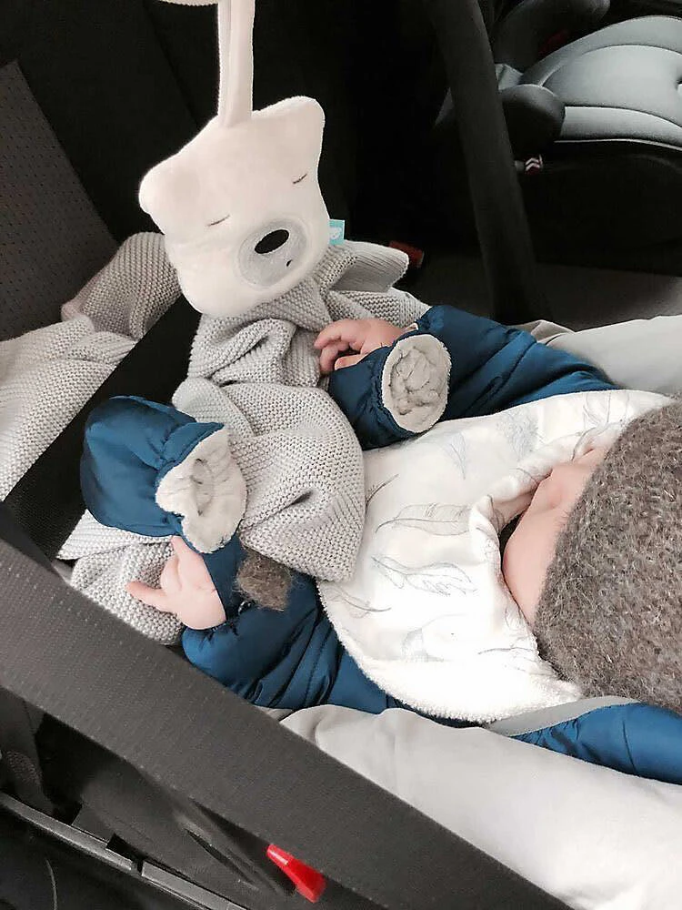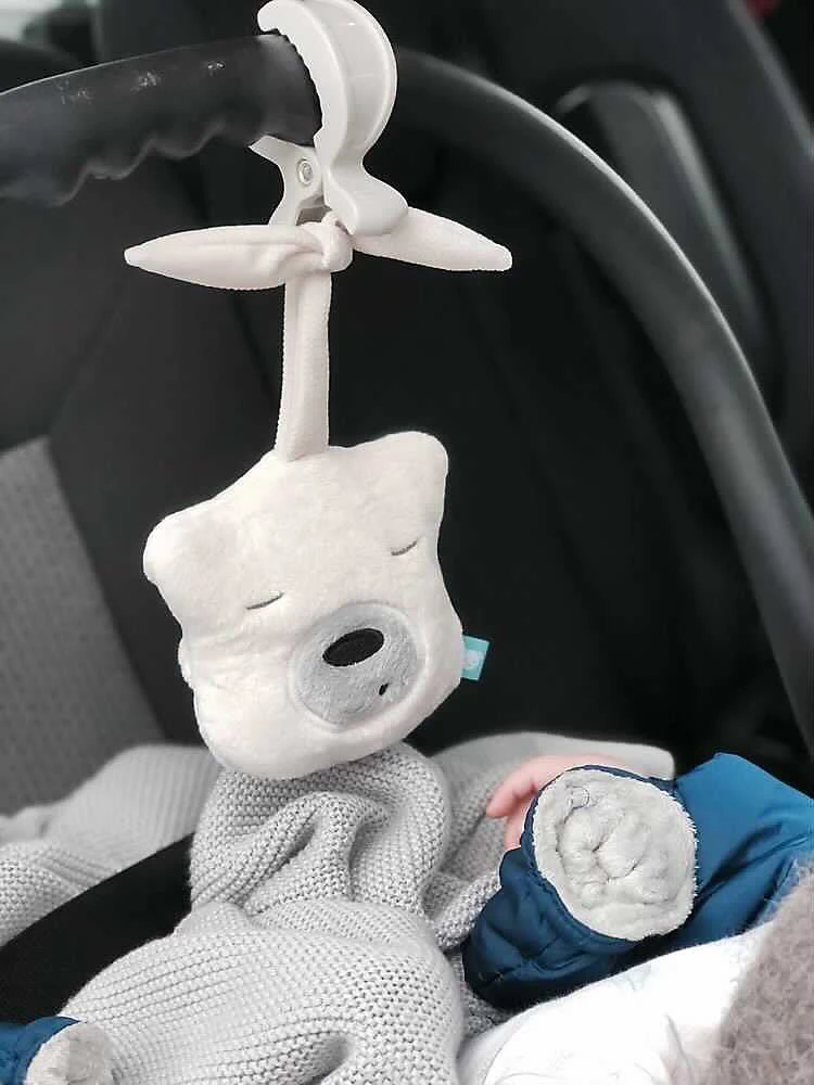 – mit Klammer zum Befestigen am Kinderbett oder Autositz