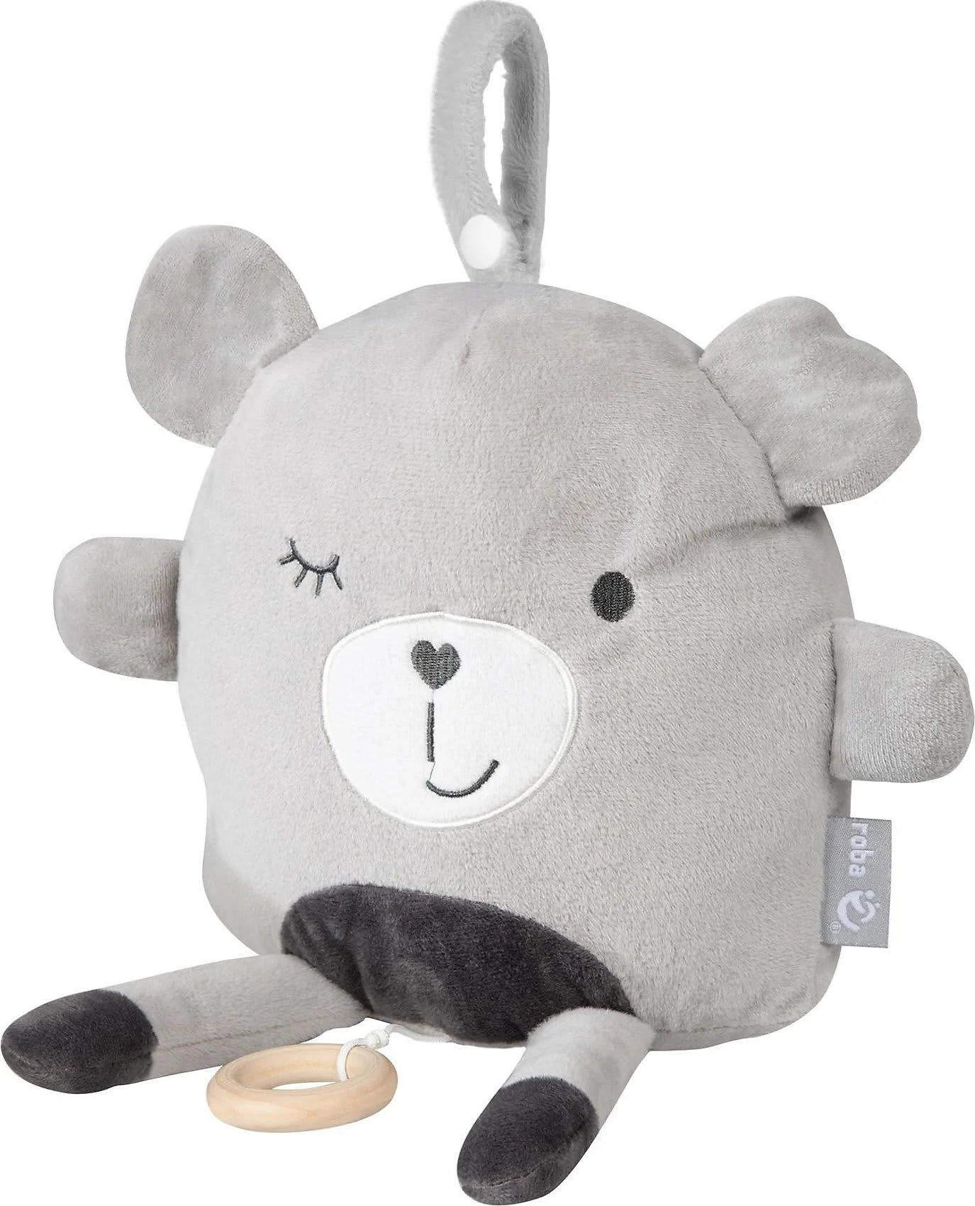 Kleine Bewacher*innen der Träume. Die “Lil Cutuies” Spieluhren von Roba erfreuen Mädchen und Jungen gleichermaßen. Sie liegen verborgen in einem niedlichen Plüschtier aus weichem Material. Mit der integrierten Schlaufe kann das Produkt schnell und einfach zum Beispiel am Gitterbettchen befestigt weden. Durch Aufziehen am Ring erklingt die wunderbar beruhigende Melodie des berühmten Schlaflieds “LaLeLu” und lädt zum Entspannen oder gar träumen ein.