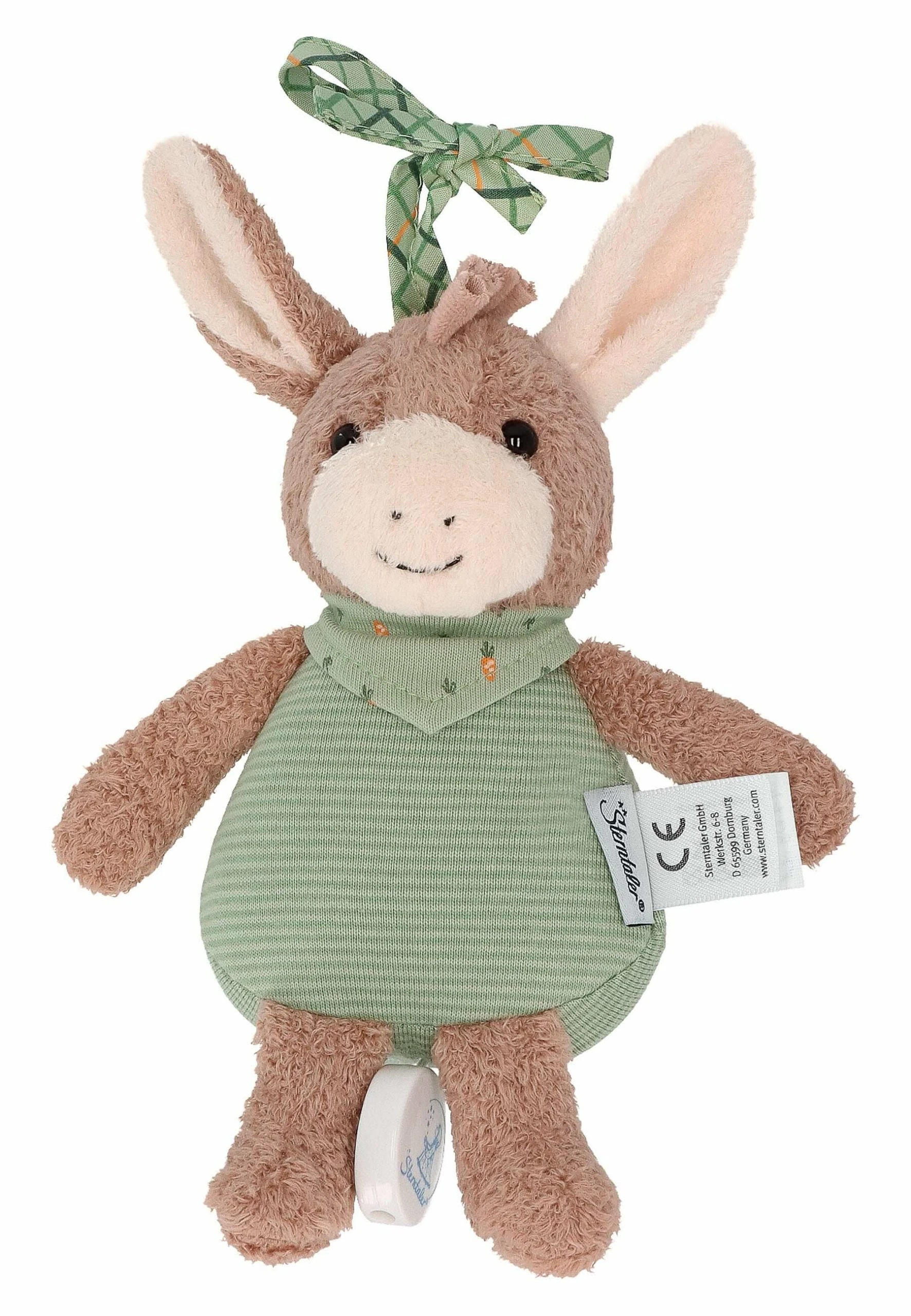 Der süße kleine Esel Emmilius aus Flauschstoff und Jersey mit Spieluhr singt das Baby in den Schlaf. Bindebänder sorgen für eine einfache Befestigung an Bettchen, Kinderwagen oder im Auto. Melodie: The Sound of Silence