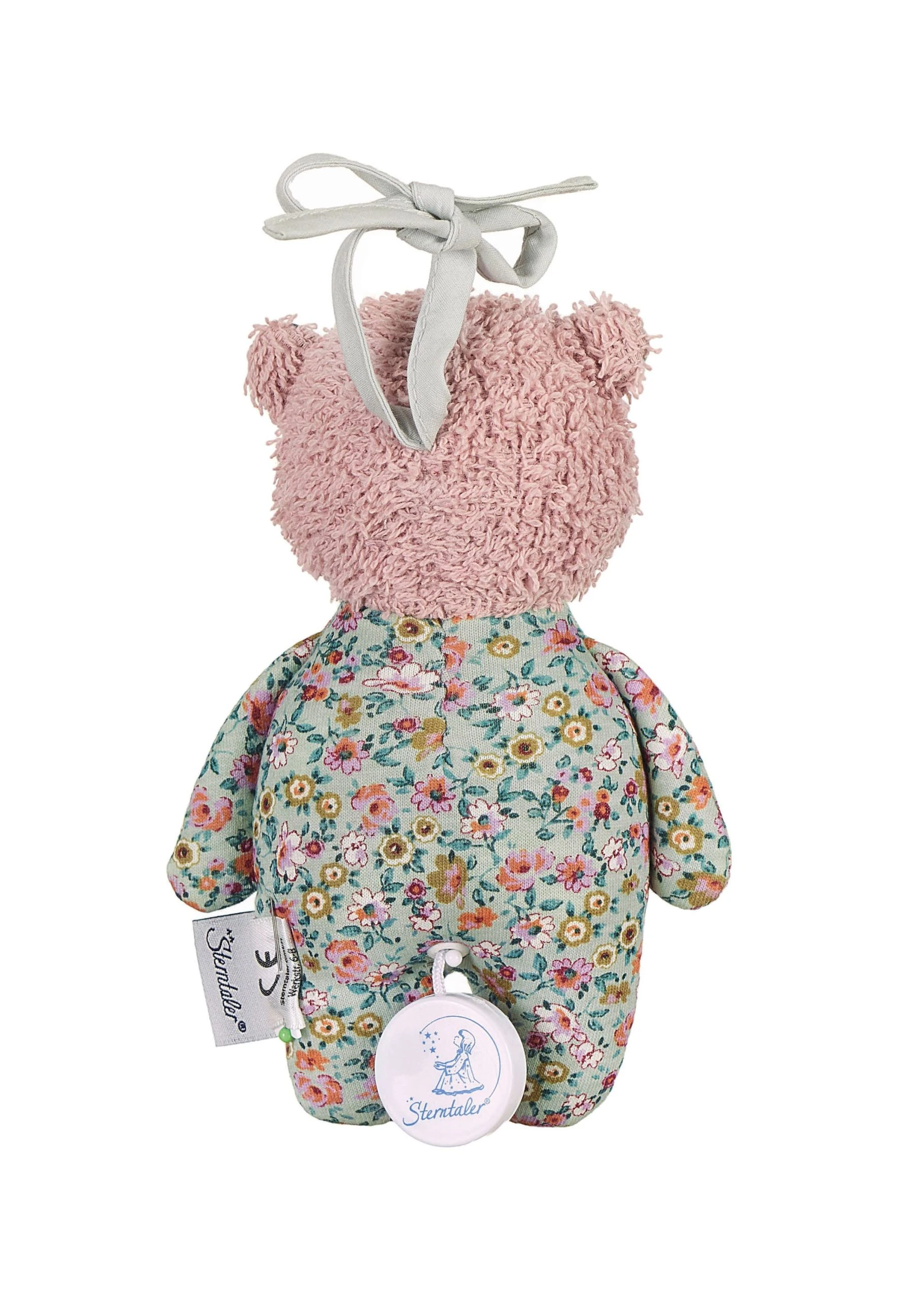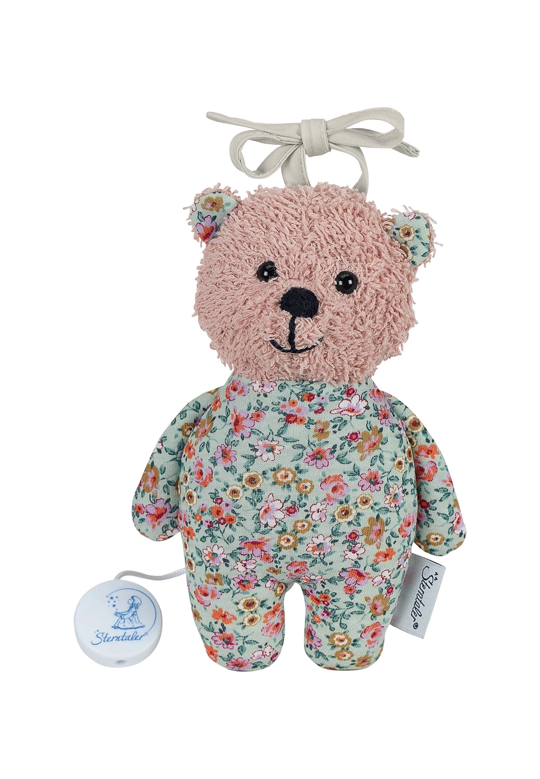 Der süße kleine Terrybär Baylee rose aus Frottee und Singlejersey mit Spieluhr singt das Baby in den Schlaf. Bindebänder sorgen für eine einfache Befestigung an Bettchen, Kinderwagen oder im Auto. Melodie: Alle Vögel sind schon da