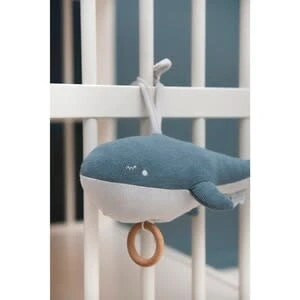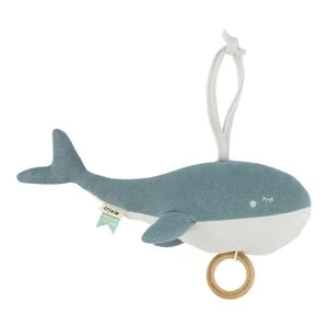 Die aufziehbare Spieluhr von Trixie begleitet Dein Baby mit einer sanften Melodie in den Schlaf. Spieluhr Wal von Trixie mit Band zur Befestigung ca. 34 cm groß Wal aus Bio-Baumwolle mit recycelter Füllung, Ring aus Holz ab Geburt geeignet Der süße Wal spielt nicht nur eine beruhigende Melodie, sondern eignet sich auch hervorragend zum Kuscheln und Knuddeln. Dank Strick aus Bio-Baumwolle fühlt sich der Wal dabei auch immer angenehm weich an. Mit dem praktischen Band kann die Spieluhr kinderleicht an Bettchen, Kinderwagen oder Babyschale befestigt werden.